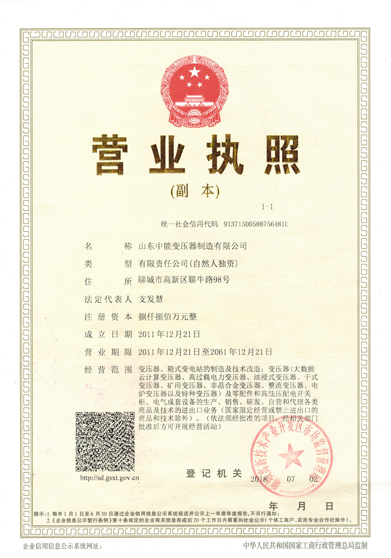 荣誉资质_四川中能变压器厂家